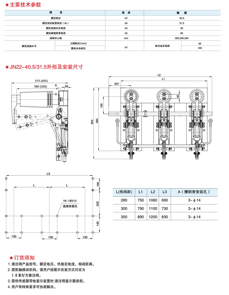 項(xiàng)技術(shù)要求,適用于三相額定電壓40.5kV,交流50Hz的電力系統(tǒng).可與KYN61-40.5高壓開關(guān)柜及其它型號(hào)高壓開關(guān)柜配套使用,亦可作為高壓電
